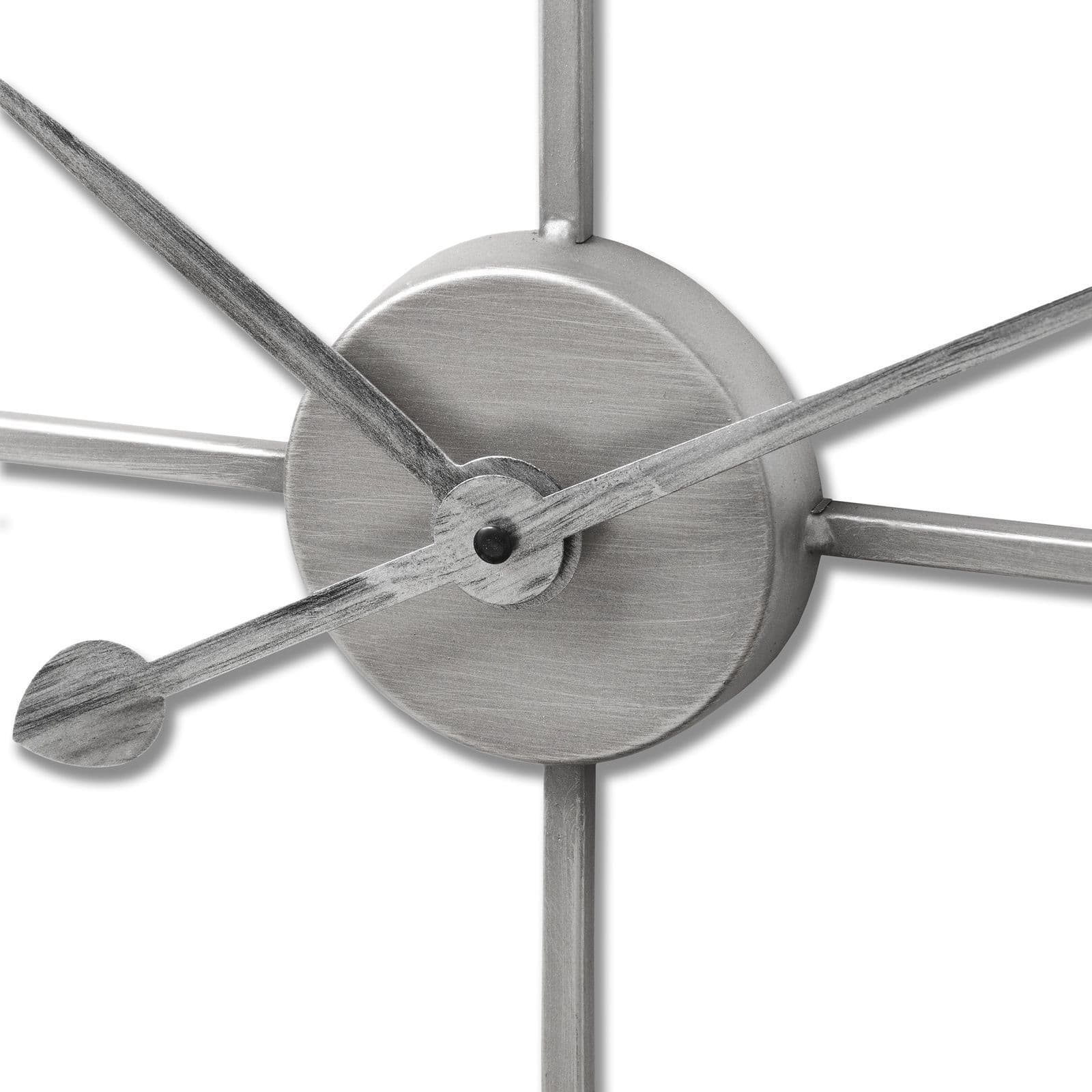 Feature Piece Large Shabby Chic Nickel Skeleton Wall Clock 80cm Silver